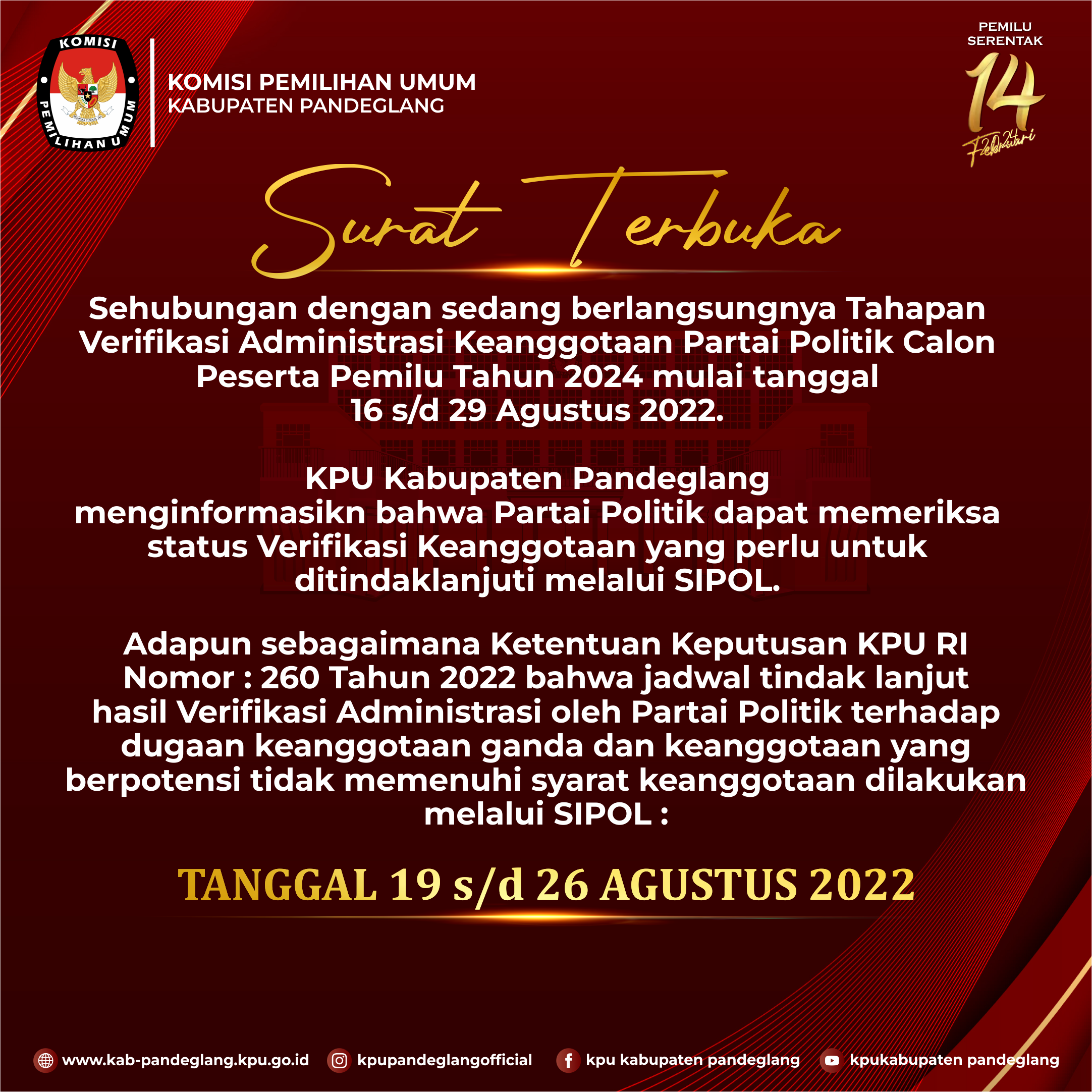 Sesuai dengan Keputusan KPU RI Nomor 476 Tahun 2022 tentang Pedoman Teknis Pembentukan Badan Adhoc Penyelenggaraan Pemilihan Umum dan Pemilihan Gubernur dan Wakil Gubernur, Bupati dan Wakil Bupati dan Walikota dan Wakil Walikota.