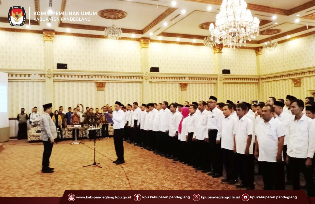 KPU Kabupaten Pandeglang tetapkan Sekretaris dan Staf Sekretariat Panitia Pemilihan Kecamatan (PPK) pada Pemilihan Umum Serentak Tahun 2024, di Ballroom Hotel Horison Altama Pandeglang, Selasa 10/01/2023 Sebagaimana diatur dalam ketentuan, Sekretariat PPK ditetapkan untuk membantu PPK menyelenggarakan Pemilu dan Pemilihan di tingkat kecamatan atau nama lain. Penetapan dan penandatanganan diikuti oleh 105 orang Sekretariat PPK dari 35 Kecamatan yang tersebar di Wilayah Kabupaten Pandeglang. Ketua KPU Pandeglang Ahmad Suja'i dalam sambutannya menjelaskan Sekretariat PPK berjumlah 3 (tiga) orang berasal dari ASN dan Non- ASN yang bekerja di lingkungan Pemerintah Kabupaten Pandeglang dengan susunan keanggotaan Sekretariat PPK terdiri atas 1 (satu) orang Sekretaris PPK dan 2 (dua) orang Staf Sekretariat PPK. "Tugas sekeratriat PPK adalah memberikan dukungan fasilitasi tahapan penyelenggraan pemilu di tingkat kecamatan, serta memberikan dukungan fasilitasi adminitrasi pembiayaan, pertanggungjawaban keuangan" kata Ahmad Sujai Ahmad Suja'i juga berpesan agar jajaran sekretariat PPK bisa bersinergi dengan Anggota Panitia Pemilihan Kecamatan serta bekerja dengan sungguh-sungguh, jujur, adil, dan cermat demi suksesnya Pemilu serentak 2024. Hadir pada prosesi penetapan dan penandatanganan pakta integritas, Ketua dan Anggota KPU Pandeglang, Bawaslu Pandeglang, Bupati Pandeglang dan Forkopimda Pandeglang serta Ketua Panitia Pemilihan Kecamatan Se-Kabupaten Pandeglang.