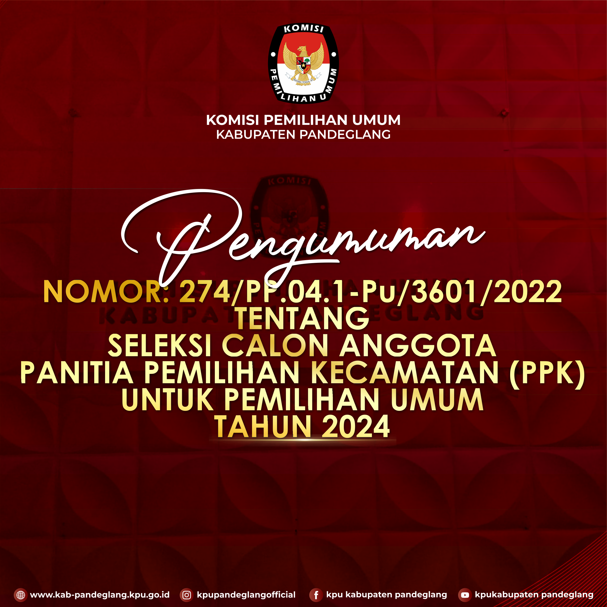 PENGUMUMAN SELEKSI CALON ANGGOTA PANITIA PEMILIHAN KECAMATAN (PPK) UNTUK PEMILIHAN UMUM TAHUN 2024