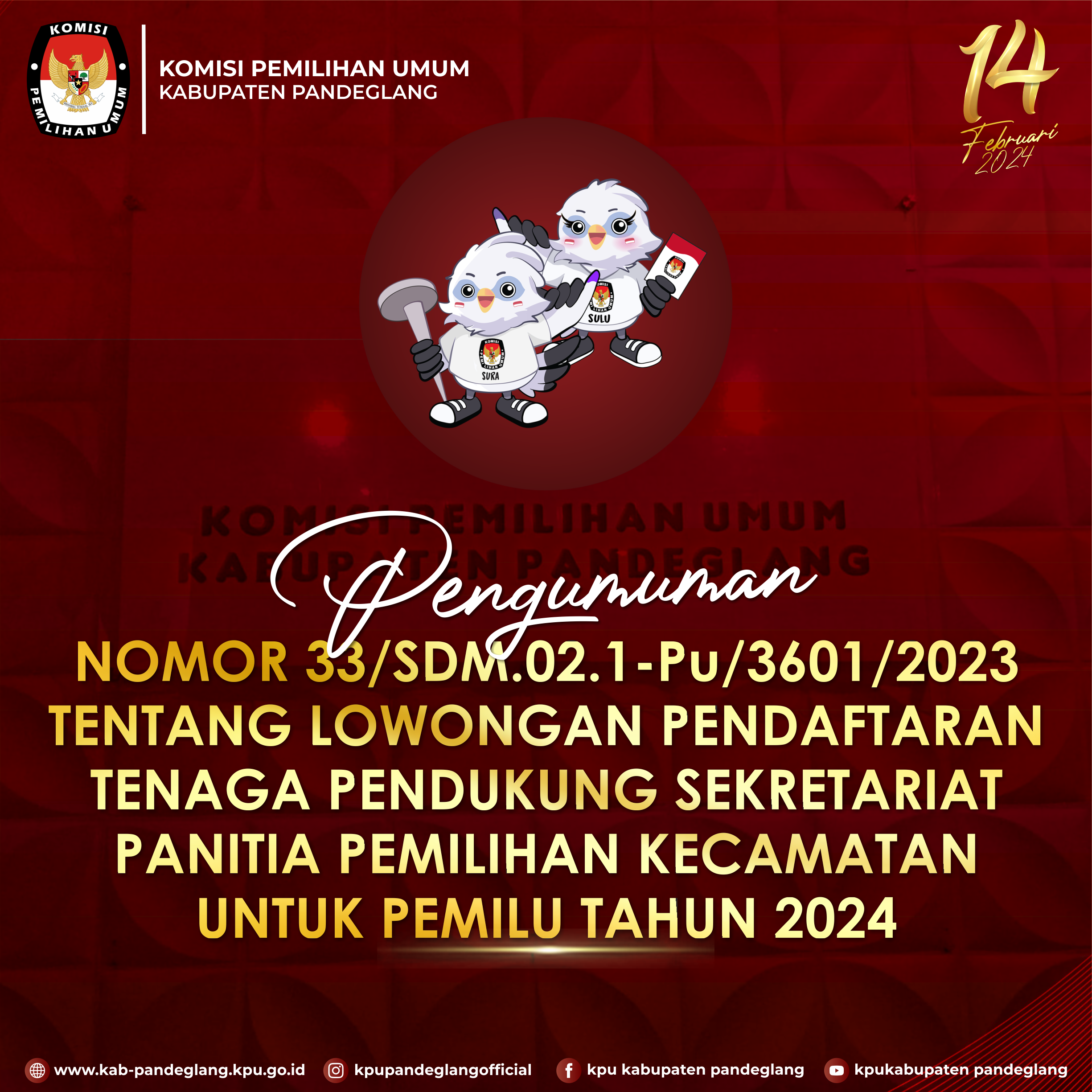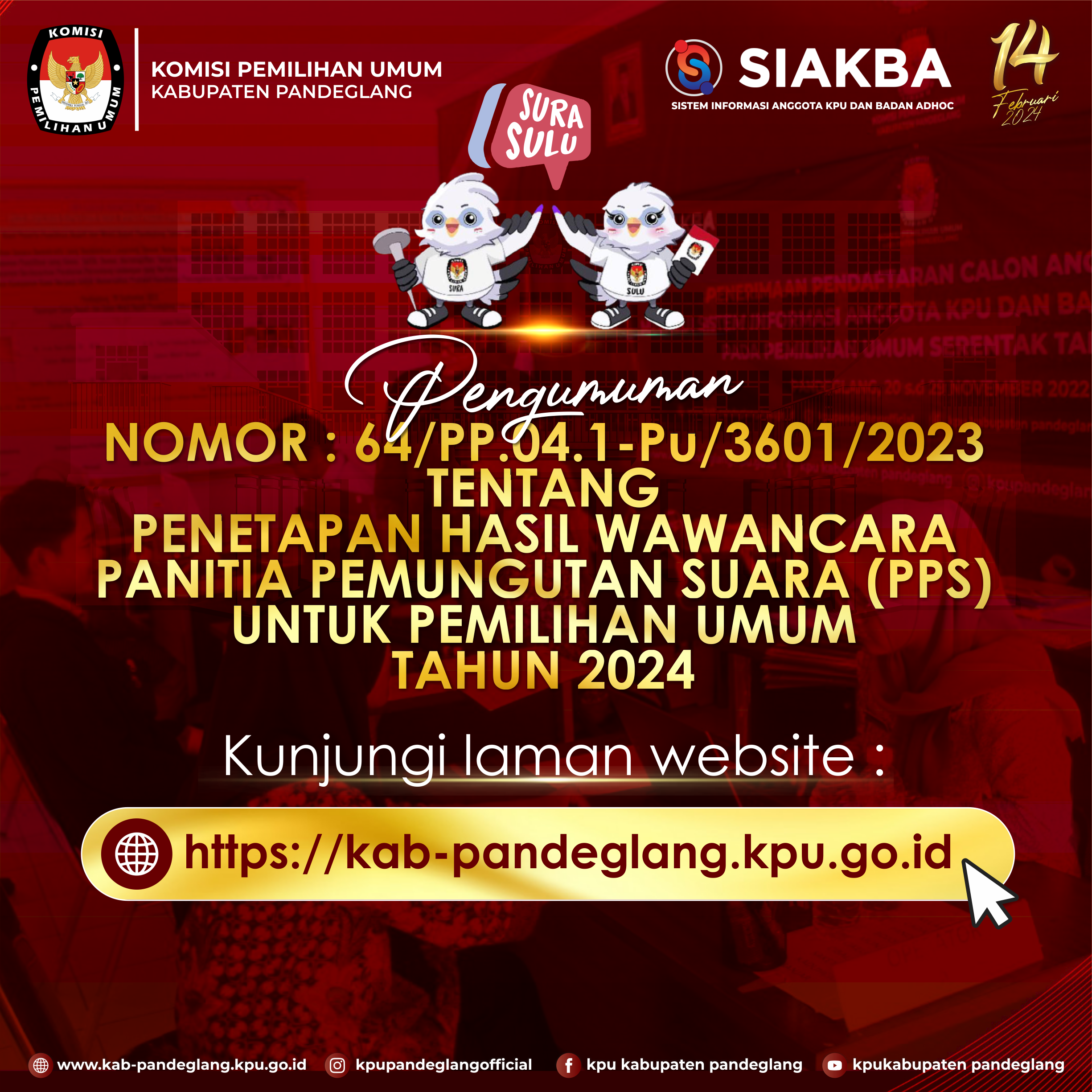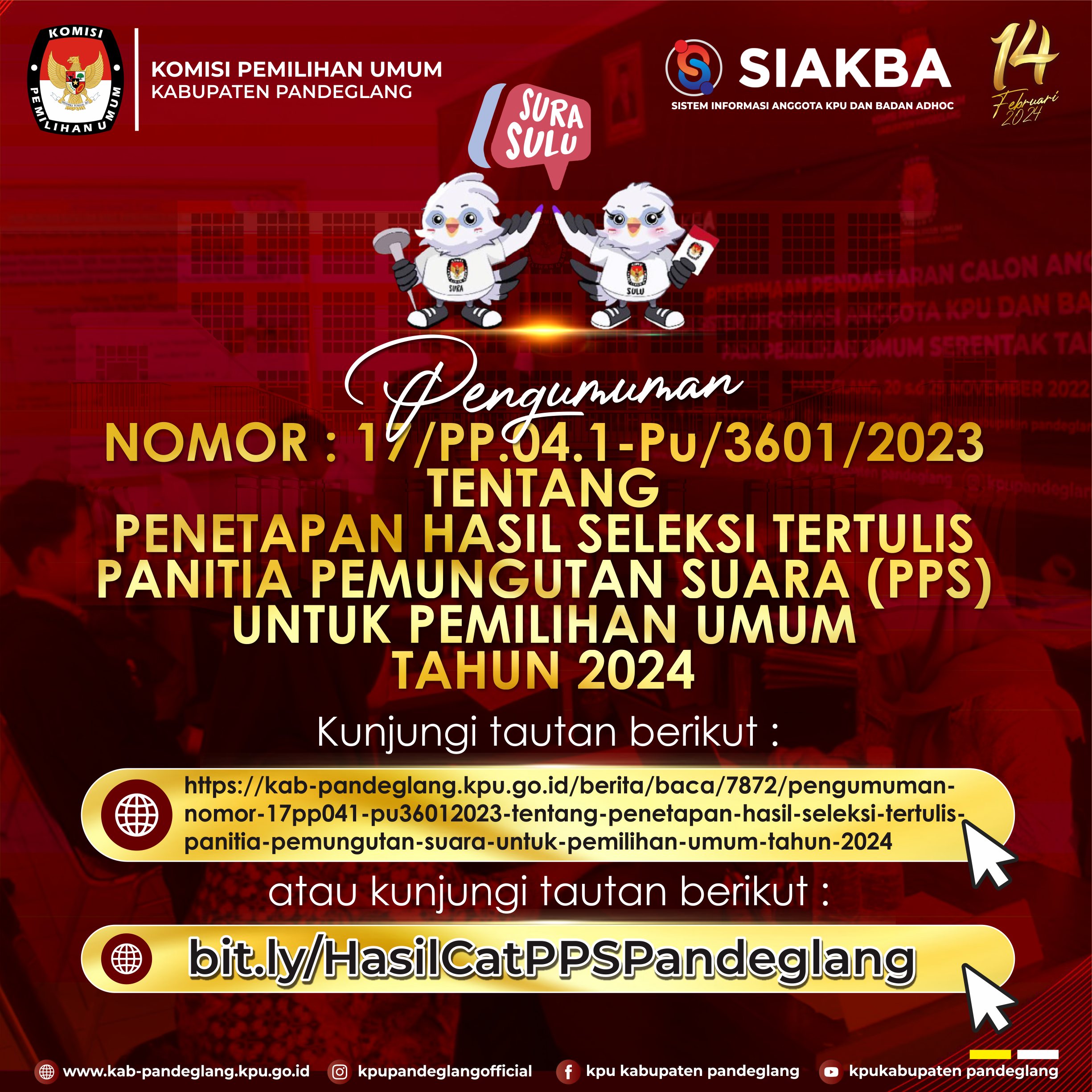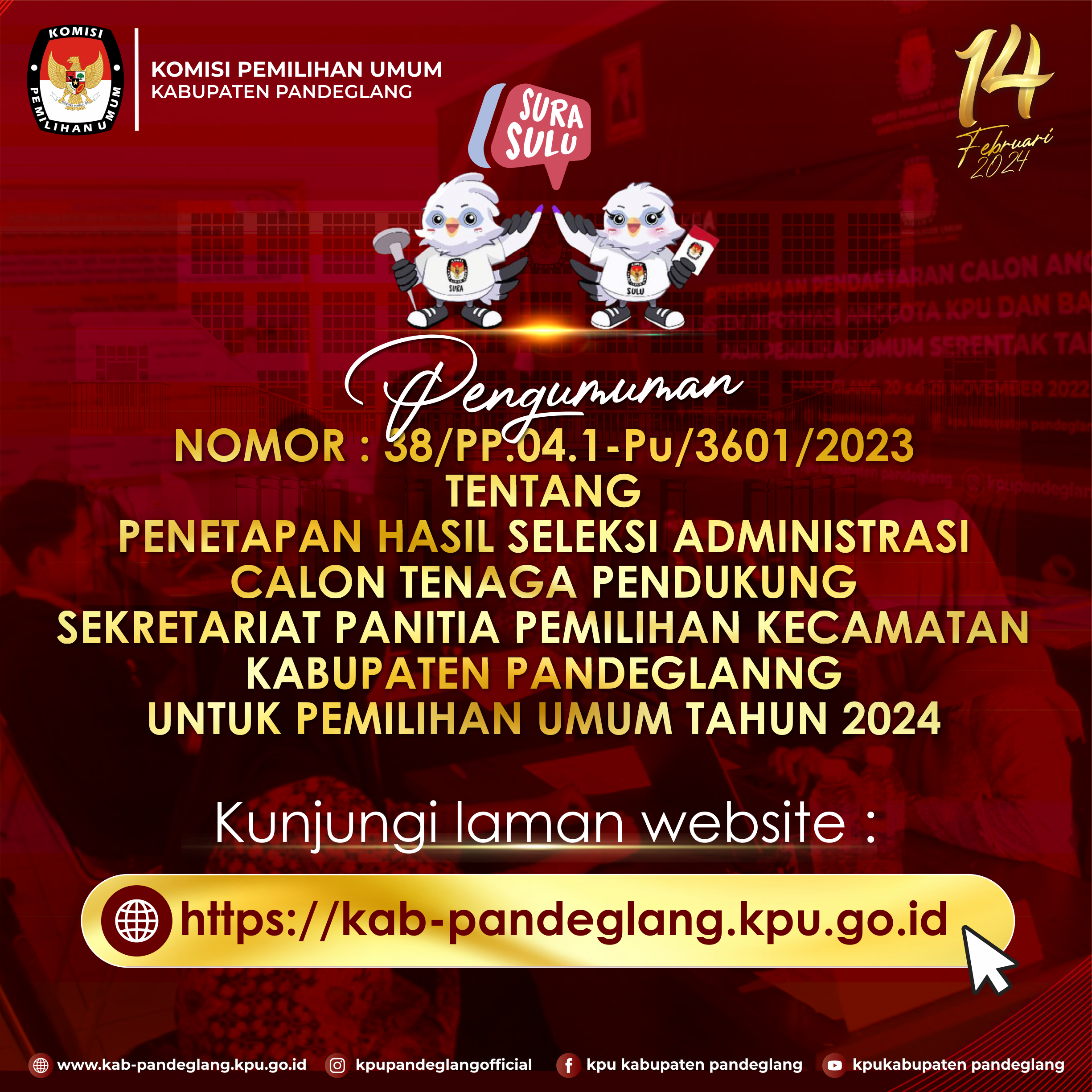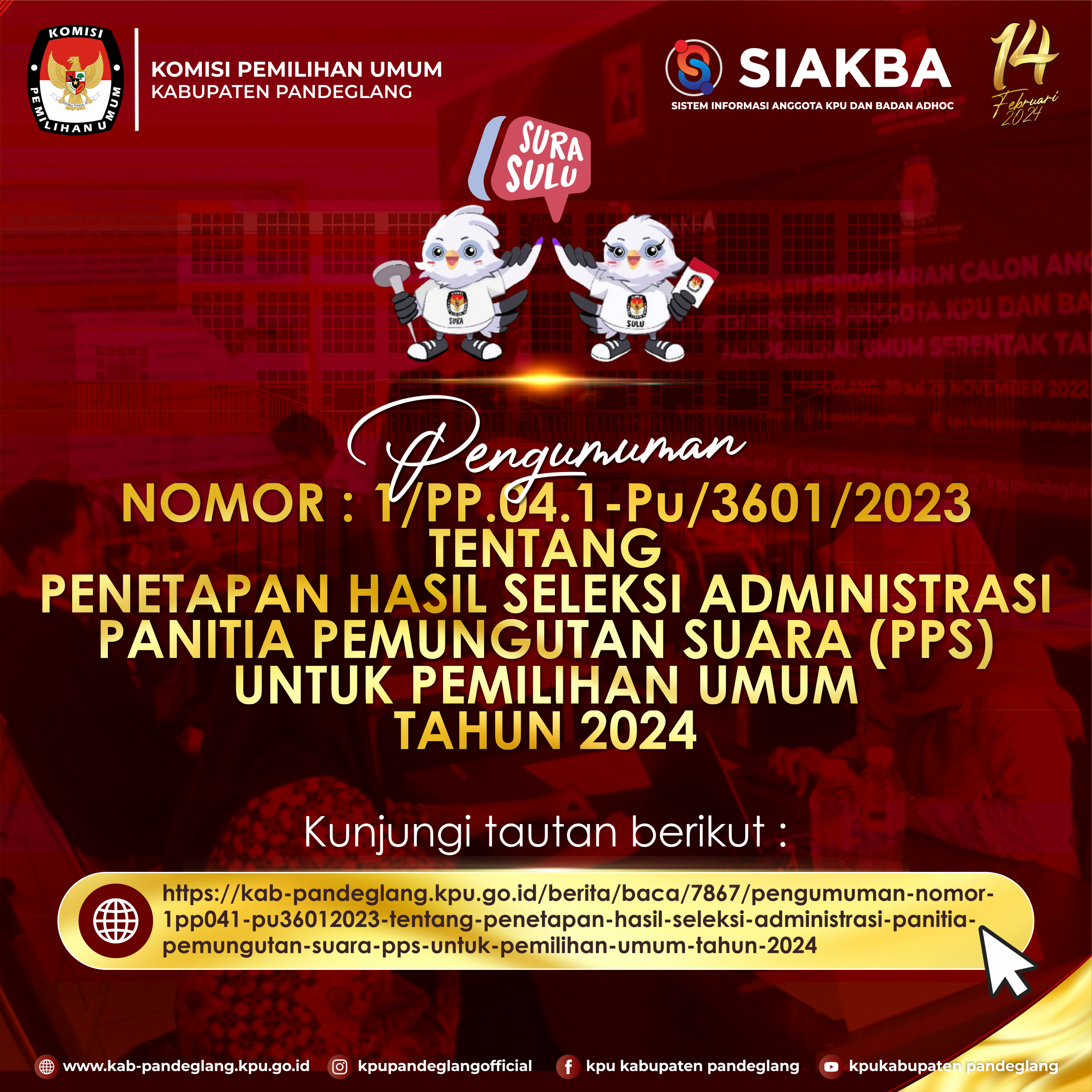 PENGUMUMAN NOMOR : 1/PP.04.1-Pu/3601/2023 TENTANG PENETAPAN HASIL SELEKSI ADMINISTRASI PANITIA PEMUNGUTAN SUARA (PPS) UNTUK PEMILIHAN UMUM TAHUN 2024